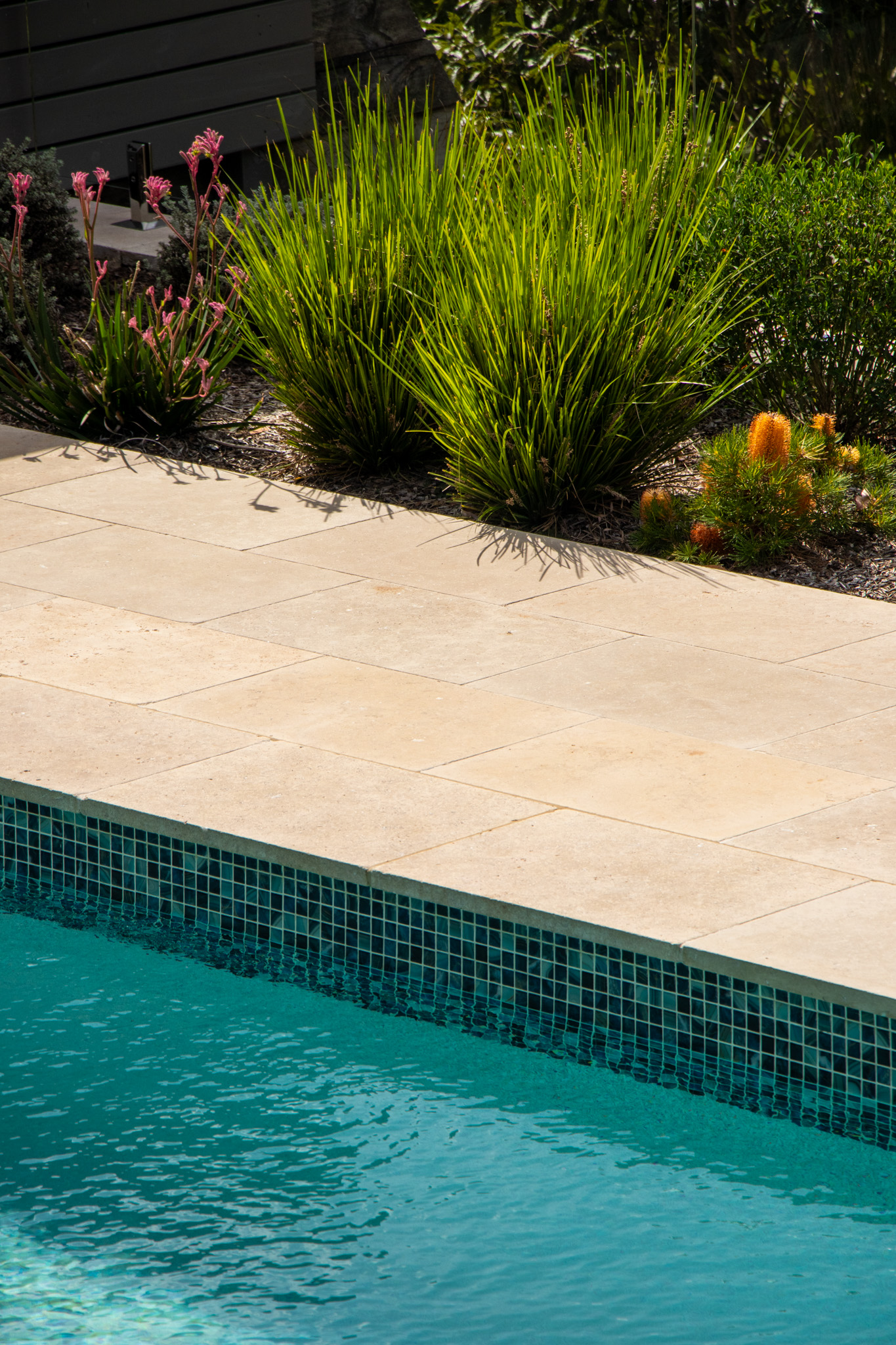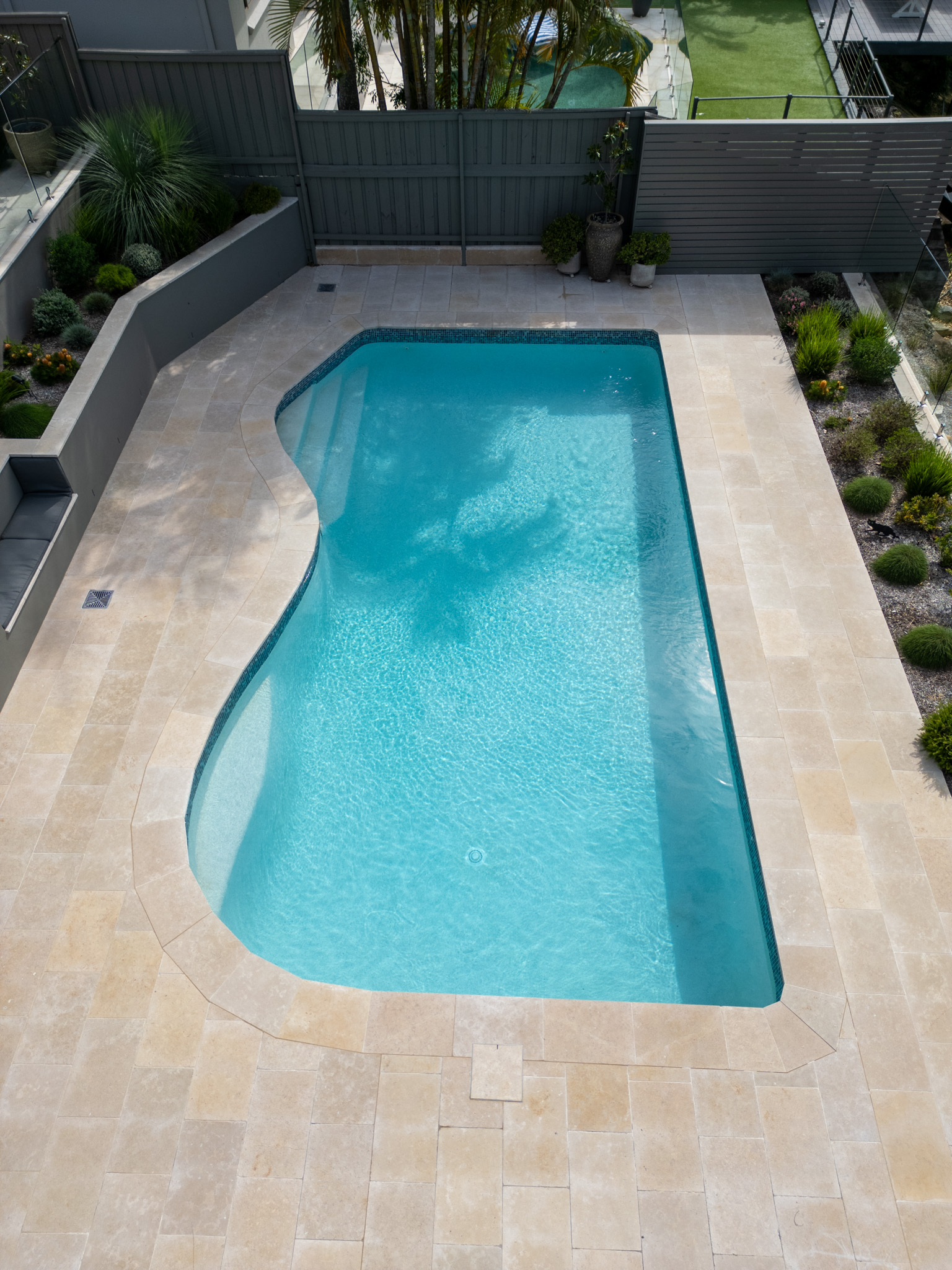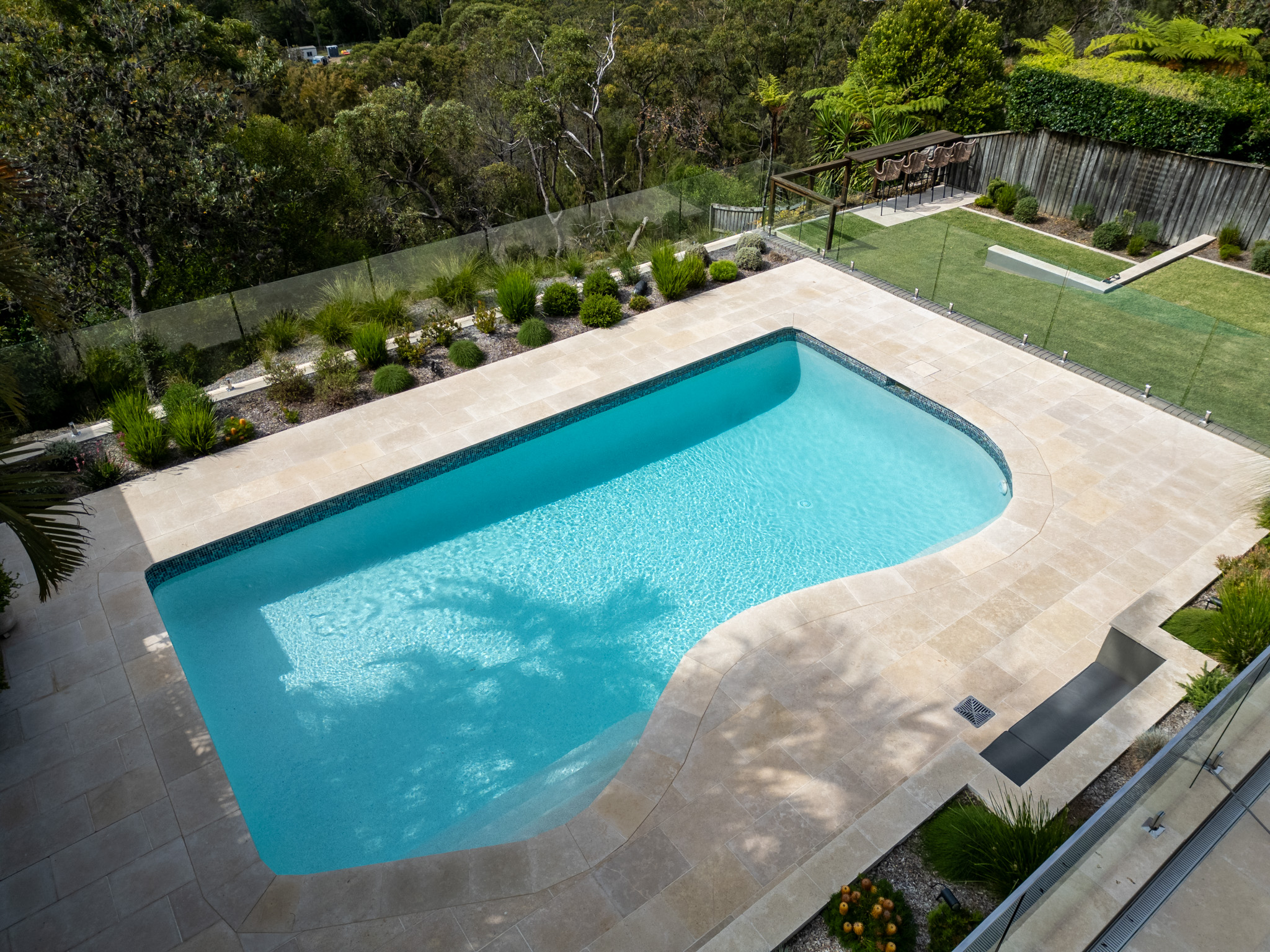 Old terracotta pool and terrace area transformed into a modern bush oasis!